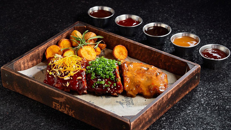 FRANK by БАСТА — ресторанная концепция, в основе которой лежит понимание настоящей мясной аутентичности. Экспертиза поваров команды FRANK стала отправной точкой в формировании меню и идеологии ресторана. Вот почему даже самый требовательный ценитель мяса не сможет остаться в стороне и не стать искренним поклонником якорного блюда — фирменных свиных и говяжьих ребер.