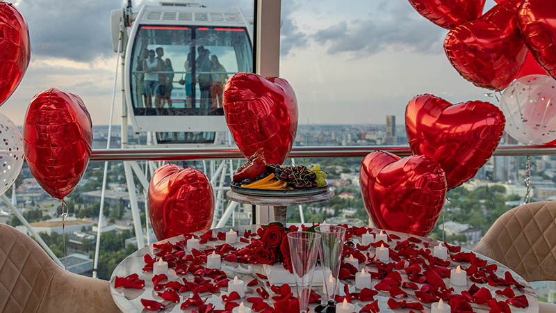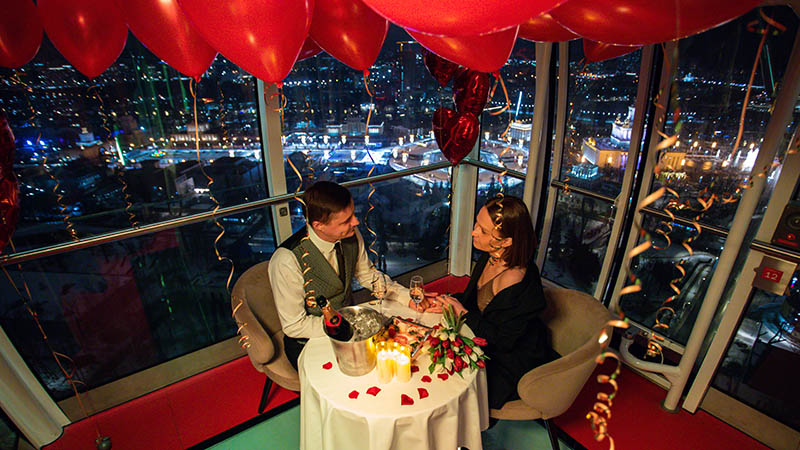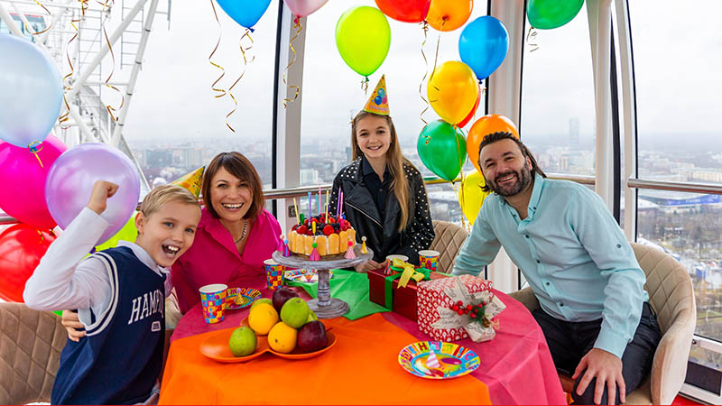 В центре бронирования мероприятий «Солнца Москвы», который расположен на городском променаде, гостям помогут организовать необычный праздник в кабине колеса обозрения на высоте 140 метров.